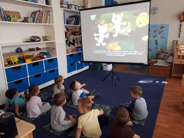 A nap végén megnéztük A csillagszemű juhász című népmesét a kivetítő segítségével.