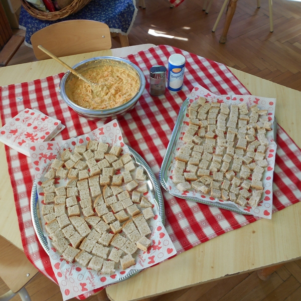 Végül a gyerekeknek ügyességükért, ajándékba matricát, színezőt és fogkrémet osztottak ki a fiatal orvostanhallgatók. Ez után került sor a finomabbnál finomabb és különleges zöldségekből, gyümölcsökből álló saláták elfogyasztására, melyet közösen készítettek el a gyermekek az óvó nénikkel, nevelést segítő dolgozókkal. Az alapanyagot a szülők biztosították, ezúton is köszönetet mondunk segítségükért. A salátákból, egészséges magvakból délután a szülőket is megvendégelték a gyermekek.