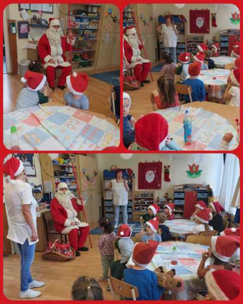 Az adventi készülődés időszakában december 6-án a jó öreg Mikulás is megérkezett óvodánkba. A sok kíváncsi kisgyerek már nagyon várta őt. Körbe járva az udvaron mindenhova bekopogtatott. Puttonyában lapult mindenféle földi jó, dundi dió, mogyoró. A gyerekek nagy örömére mindenki kapott tőle egy szép kis csomagot.