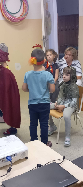 A Zöld Alma csoport gyermekei pedig a Kiskakas gyémánt félkrajcárának dramatizálásával örvendeztették meg társaikat.