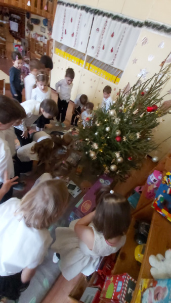 Ezen a héten minden csoport feldíszítette a fát, a felnőtt dolgozók titokban előkészítették a már korábban beszerzett ajándékokat, melyek a csoport igényeinek és fejlettségi szintjének megfelelő játékok voltak.