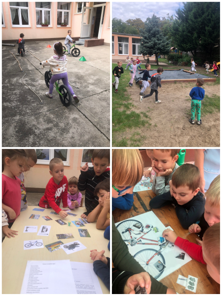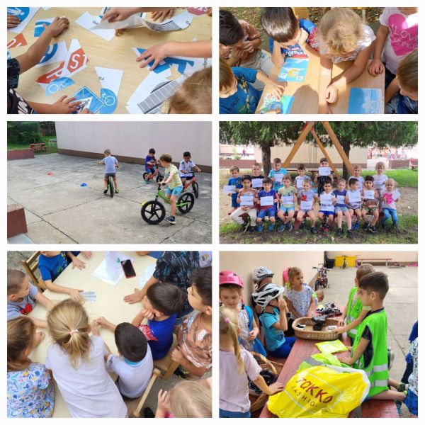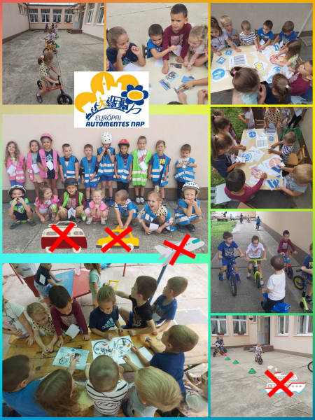 Idén mind a hét csoport nagy létszámmal tudott részt venni, és elvégezni az „Autómentes közlekedés“ kihívást. Szétválogattuk a közlekedési eszközöket, melyik környezetbarát, melyik hol közlekedik. Részletesen megbeszéltük a bicikli részeit és fel is próbáltuk a biciklis felszerelést. Alaposan megismertük a közlekedési táblákat, amelyekkel a gyerekek is találkozhatnak a mindennapos közlekedés során. Minderre a különböző állomásokon kaptunk lehetőséget, ahol, ha jól végeztük a munkánk, mindenki begyűjthetett egy-egy nyomdát a saját menetlevelére.