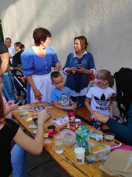 Az ünnepség hivatalos része után kezdetét vehette, a gyermekek által nagyon várt játszódélután. A népi játékok- kosaras körhinta, alma horgászat, népi játszó eszközök mellett jól megfértek a mai kor játékai is- ugrálóvár, arcfestés is.