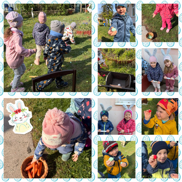 Természetesen nem csak a nyúlról szereznek ismereteket, nem csak nyuszis játékokat játszanak, hanem képeket nézegetve, beszélgetnek a locsolkodásról, tojásfestésről is. Beszélgetnek arról, hogy a fiúk mivel öntözték meg a virágokat (lányokat) régen és ma, s a lányok ezt hogyan köszönték meg. Arról, hogy a lányok tojást festettek, ezzel viszonozták a locsolást. Tanulnak locsolóverset is, hogy a fiúk felkészülten indulhassanak majd „szagos húsvét reggelén”. El is játsszák a locsolkodást a csoportokban, ahogy ez most is megtörtént. A lányok inkább már csokitojást adnak a fiúknak, de talán otthon hagyományos, igazi festett tojások is készülnek majd. A nagyobb gyerekekkel itt, az óvodában is festettek néhány csoportban főtt tojást.