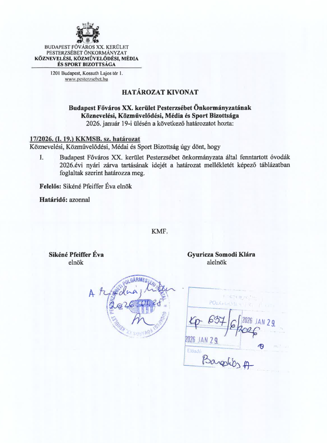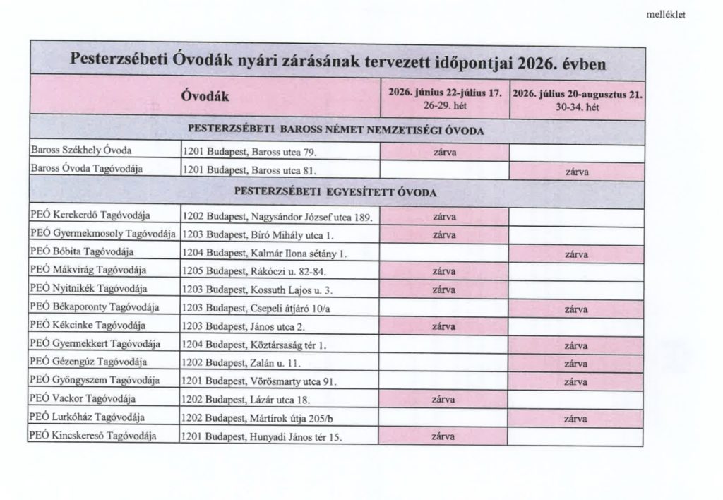 81-es óvoda zár, ügyeletes óvoda a 79-es: július 25. – augusztus 26.
